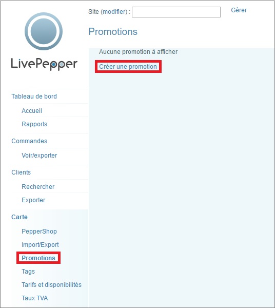Configurer la promotion dans le back office LivePepper