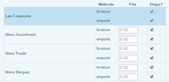 - les disponibilités par point de vente (un restaurant peut déclarer indisponible un article qu’il n’a plus en stock, sans qu’il apparaisse indisponible ailleurs) ;
